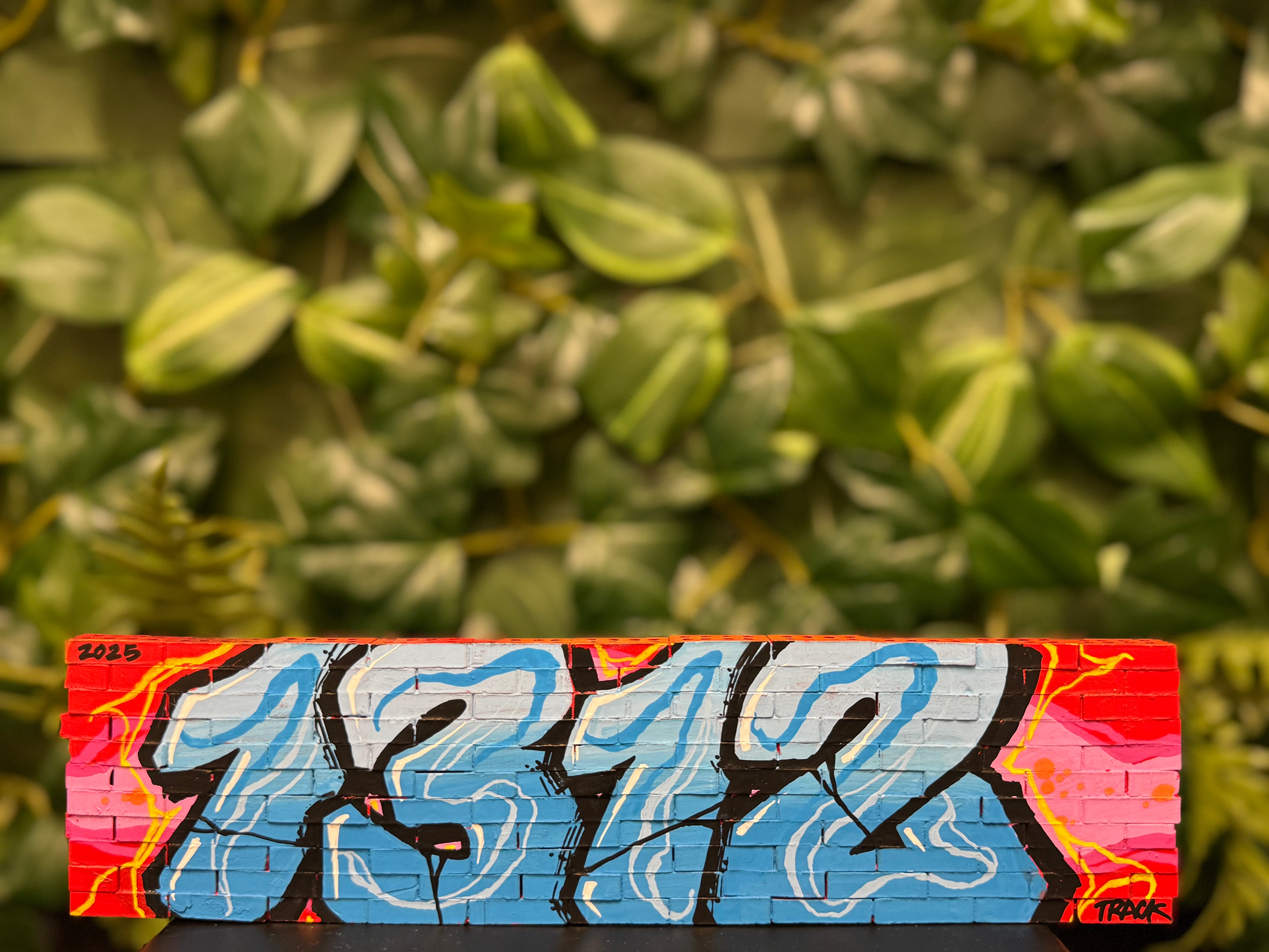 Die Minitaur-Mauer wirkt wie ein spontaner Streetart-Moment: komplett von Hand beschriftet, mit Linien, die nicht perfekt sein müssen, um genau den richtigen Vibe zu treffen. Die Schrift zieht sich rough über die Wand, mal dicker, mal dünner und Arbeitsspuren, die zeigen, dass hier echte Handarbeit drinsteckt. Die Buchstaben wirken wie schnell hingeworfen, trotzdem voller Ausdruck – ein bisschen urban, ein bisschen chaotisch, aber total authentisch. Eine Mauer, die weniger Kunst zeigt und mehr eine Message: roh, direkt und Straight von der Hand auf die Wand.